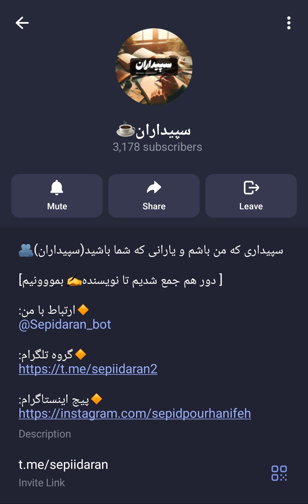 اسم کانال هست سپیداران. توسط یه بانویی به اسم سپیده خانم که خودش هم نویسندگی بلد بود، مدیریت میشه.